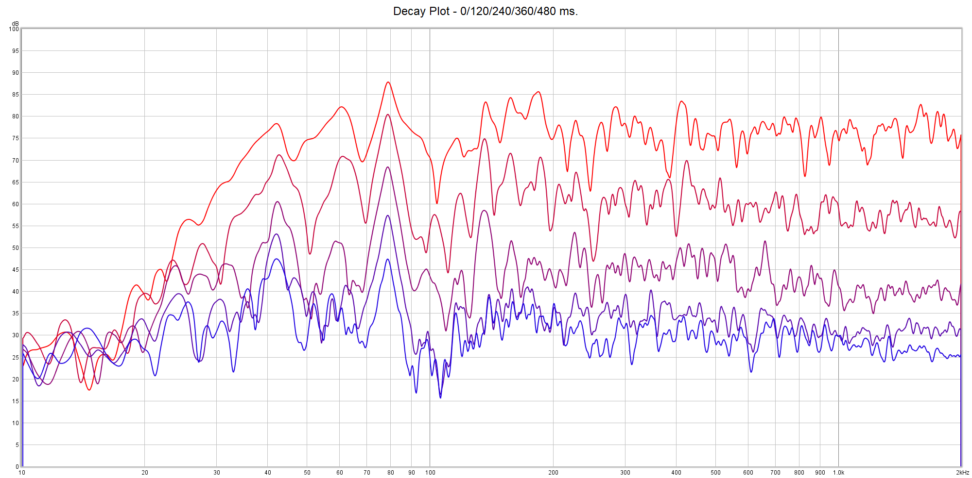 nearly limitless variations, that illustrate every aspect of the room's acoustic signature, like the sample decay and waterfall graphs shown here.